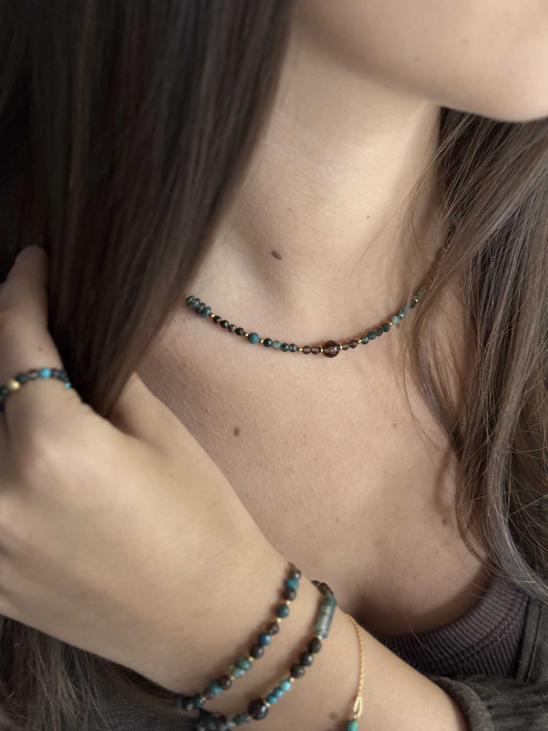 CHRYZOKOLA sprawi, że odzyskasz wewnętrzną równowagę i ukojenie emocji. Wniesie w Twoje życie delikatną siłę i łagodność, która pozwoli Ci mówić i działać z przestrzeni serca. To kamień, który wspiera w puszczaniu kontroli i przypomina, że prawdziwa moc kryje się w spokoju.
